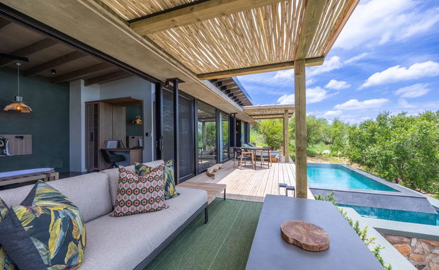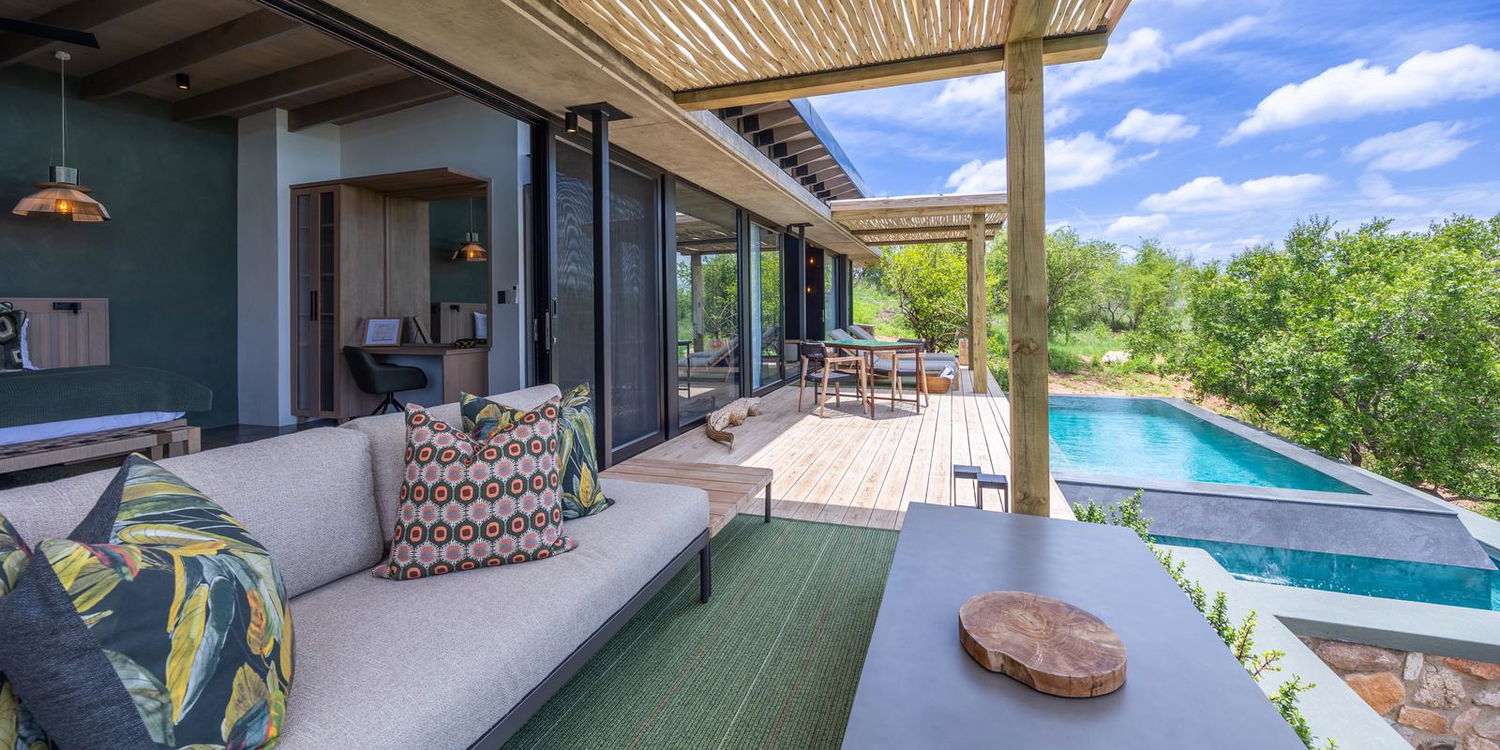 Villa Nambu, meaning river house, offers stunning 270-degree views of the Klaserie River, giving guests an expansive perspective of the river and its natural beauty. Boasting two en-suite bedrooms adjoined by a private living area, Villa Nambu is designed to offer extra space and privacy to small groups and families – without compromising on luxury.